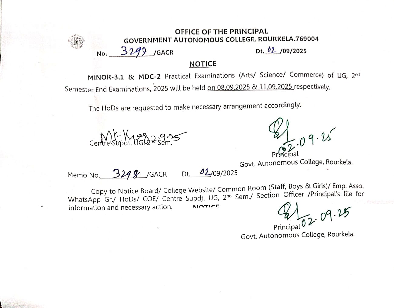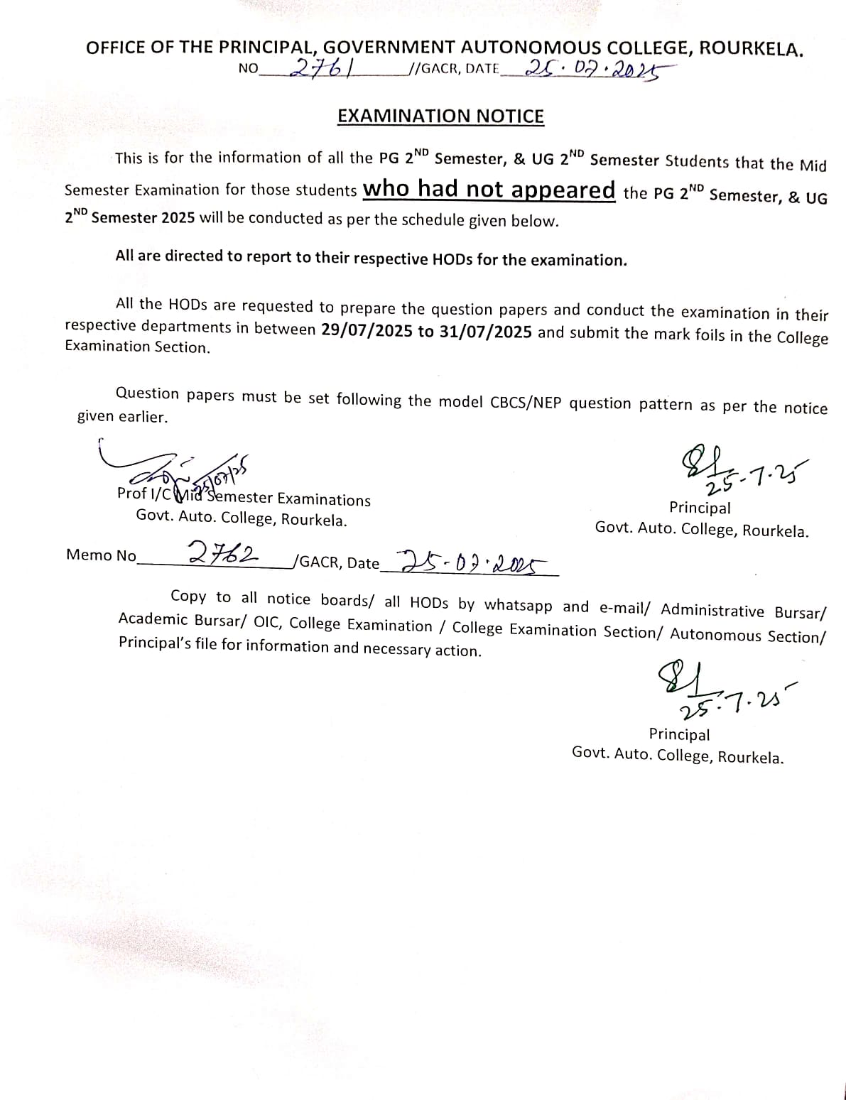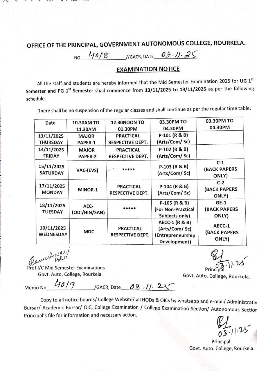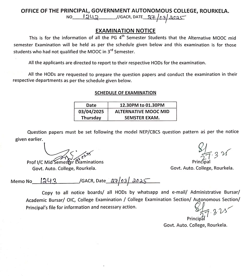 Mid Sem examinaion notice for UG 3rd, UG 5th and PG 3rd Semester Students