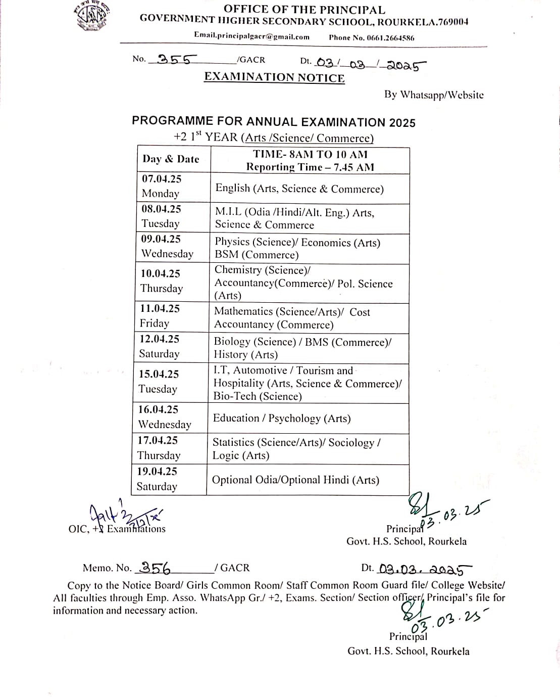 PROGRAMME FOR ANNUAL EXAMINATION 2025 +2 1ST YEAR (Arts/ Science/ Commerce)