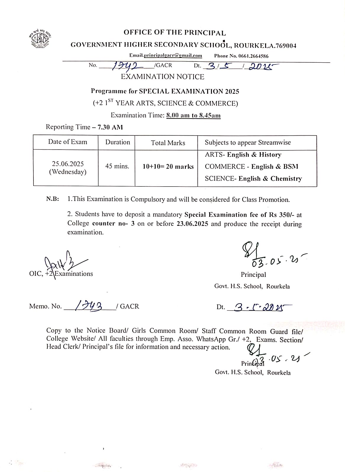 Programme for Special Examination-2025 (+2 1st Year Arts, Science & Commerce)