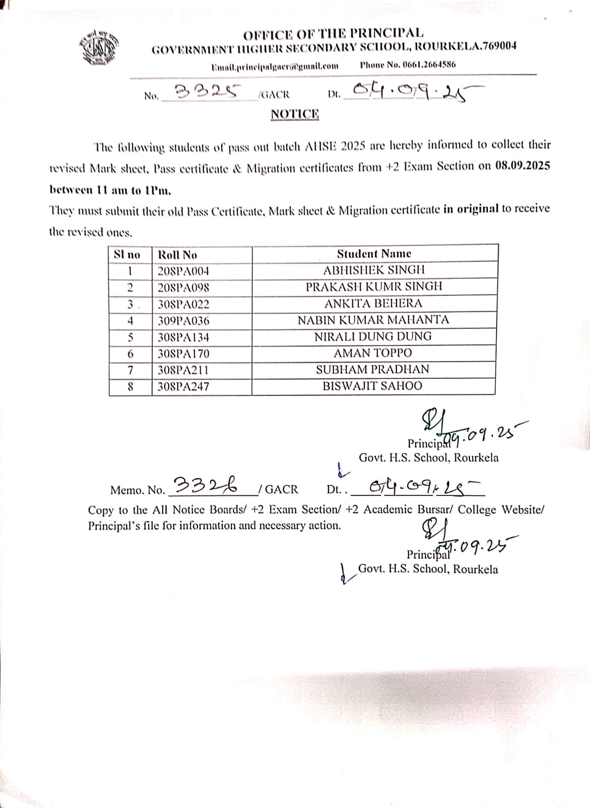 Notice for AHSE 2025 Passo out Students to collect Revised Mark Sheet, Pass Certificat & Migration Certifacte