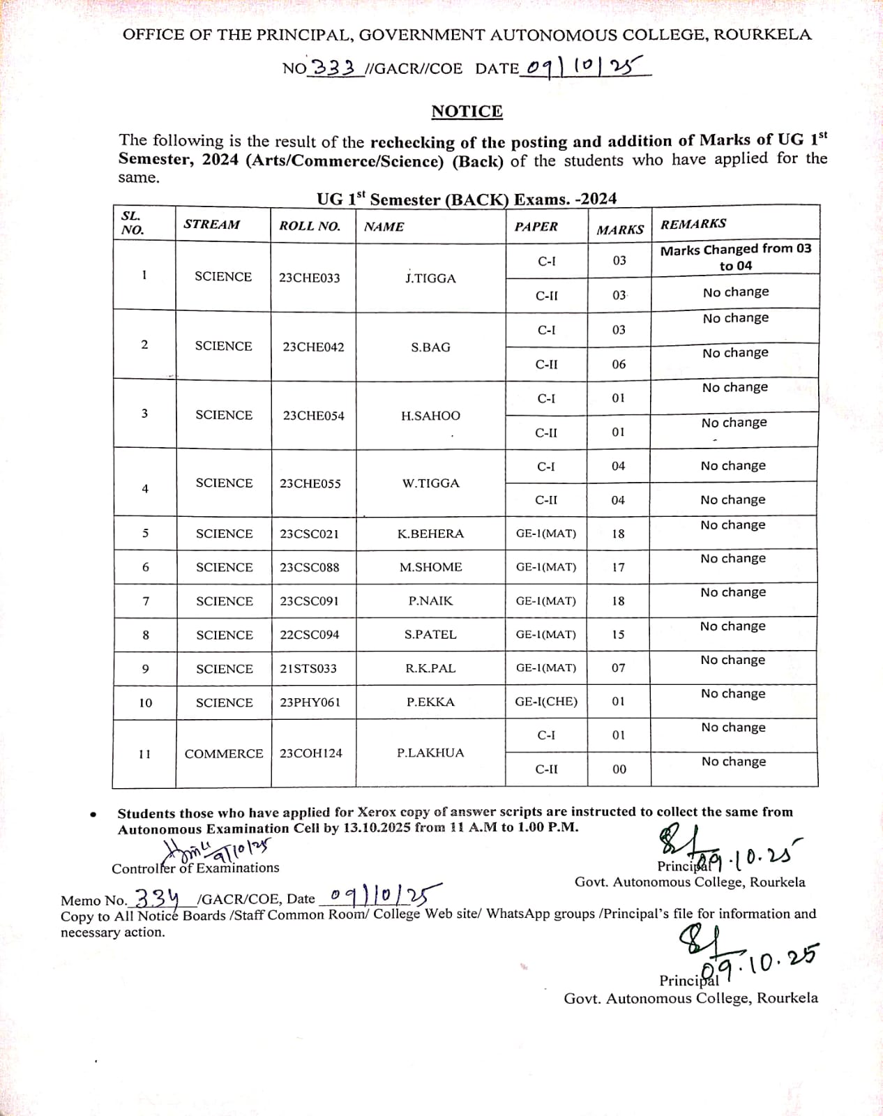 PG/UG 1st Semester 2023 Rechecking/Readdition Result