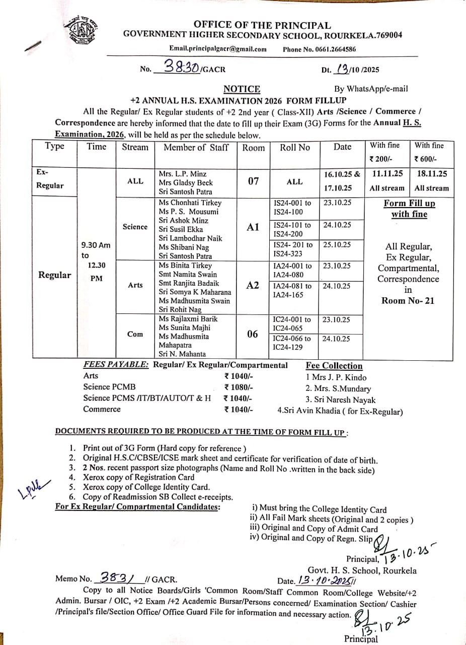 +2 Annual H. S. Examination 2024, Form Fill Up Notice (Ex-Regular)