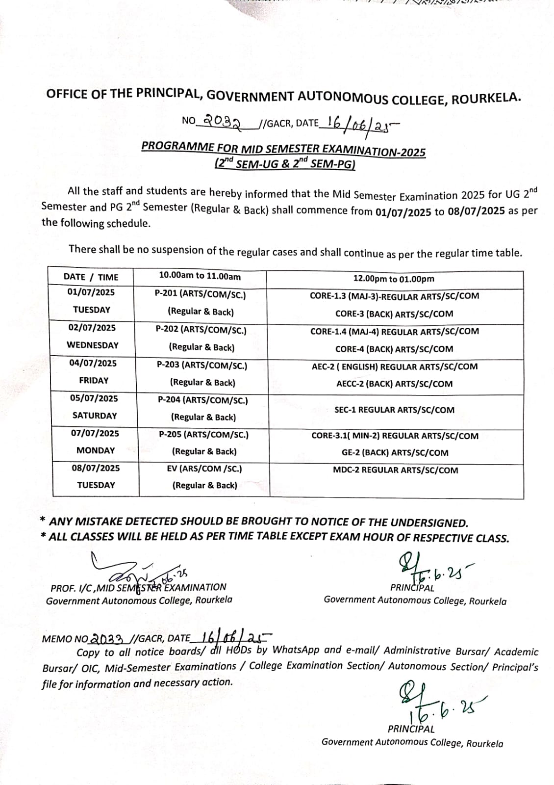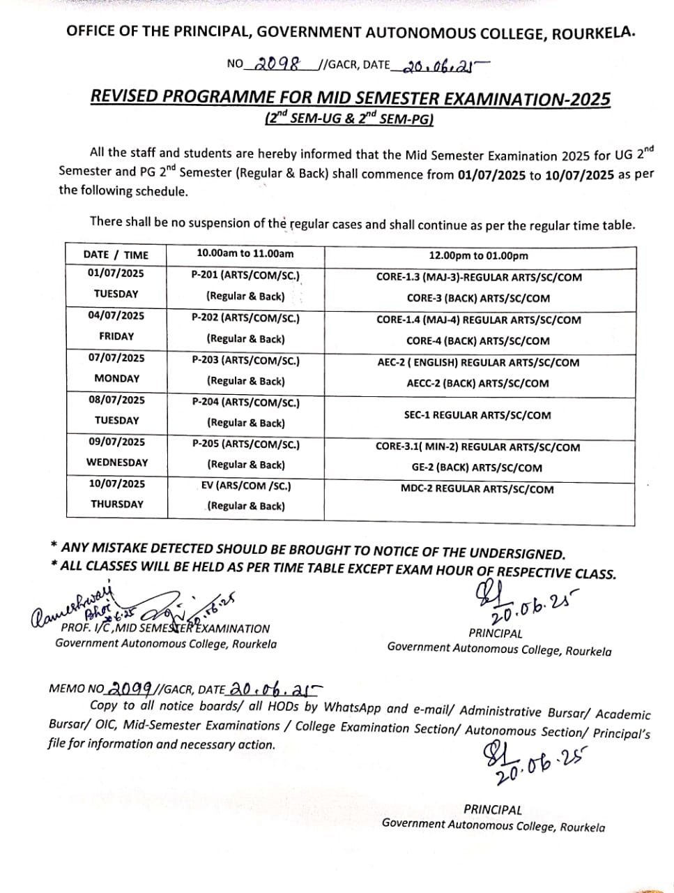 Revised Programme for Mid Semester Examination-2025 (PG/UG 2nd Semester) scheduled to be held on 17-07-2025