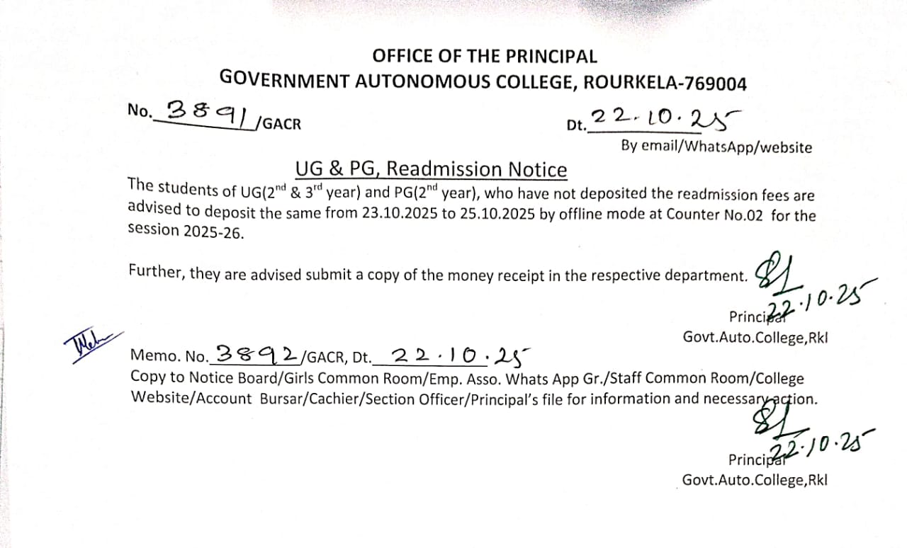 Readmission Notice for UG (2nd & 3rd Year) and PG (2nd Year) Students