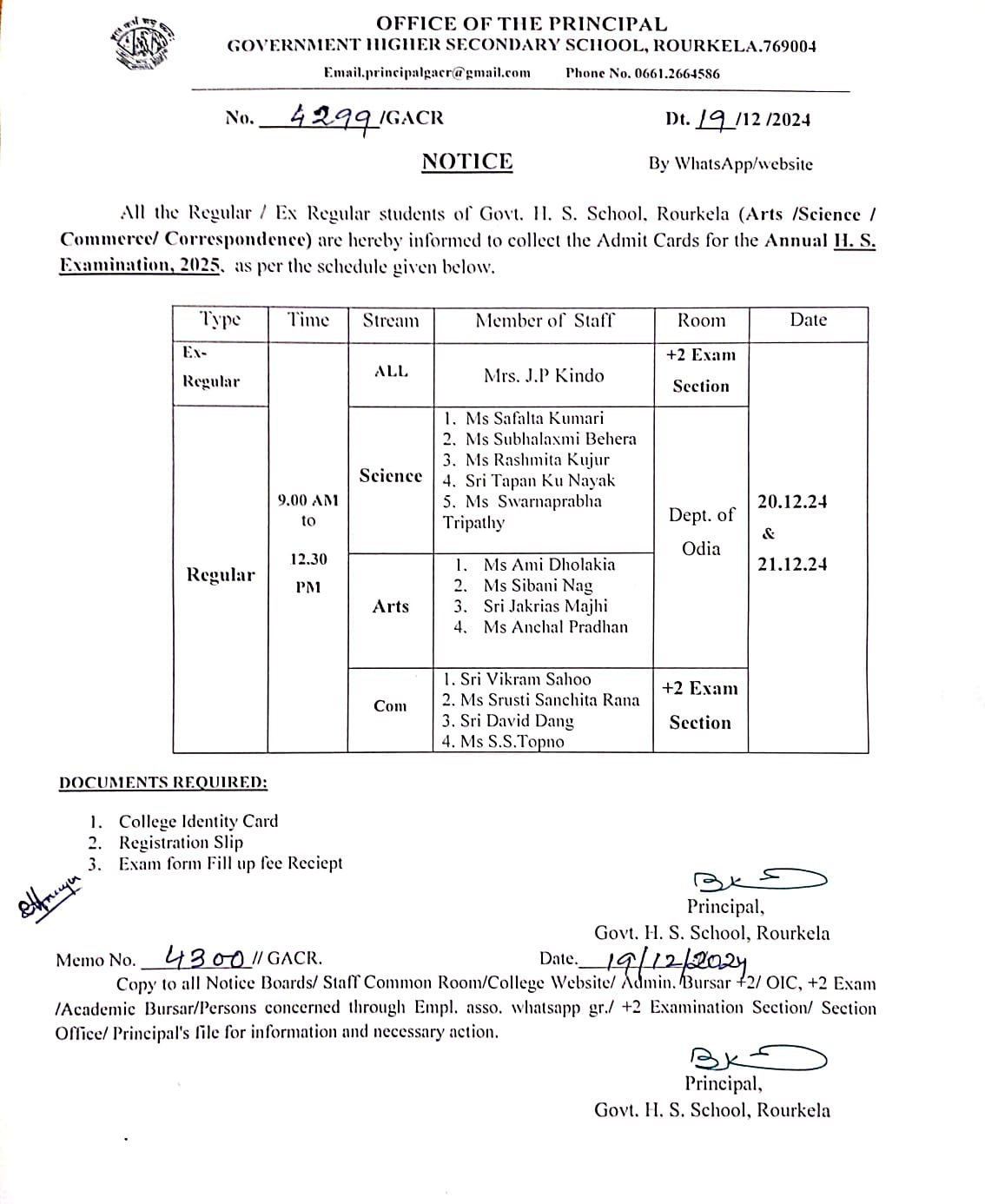 Notice for all the Regular & Ex Regular Students of GHSSR to collect their AHSE, 2025 Admit Cards