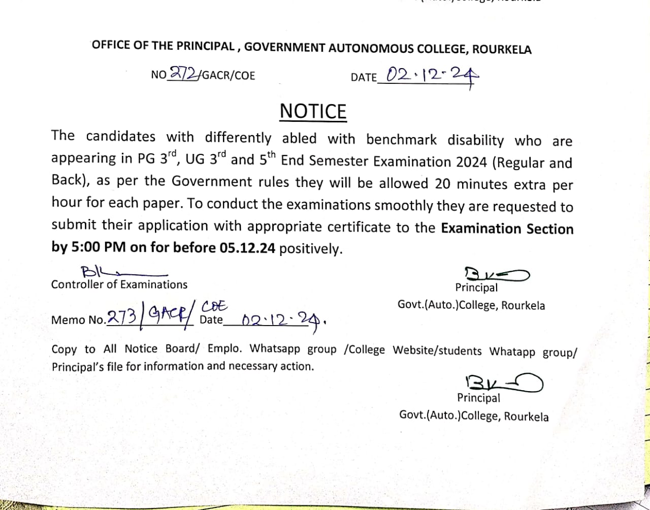 Examination Notice for Deifferently Abled with benchark disability candidates of PG 3RD/ UG 3RD & UG 5TH Semester Students