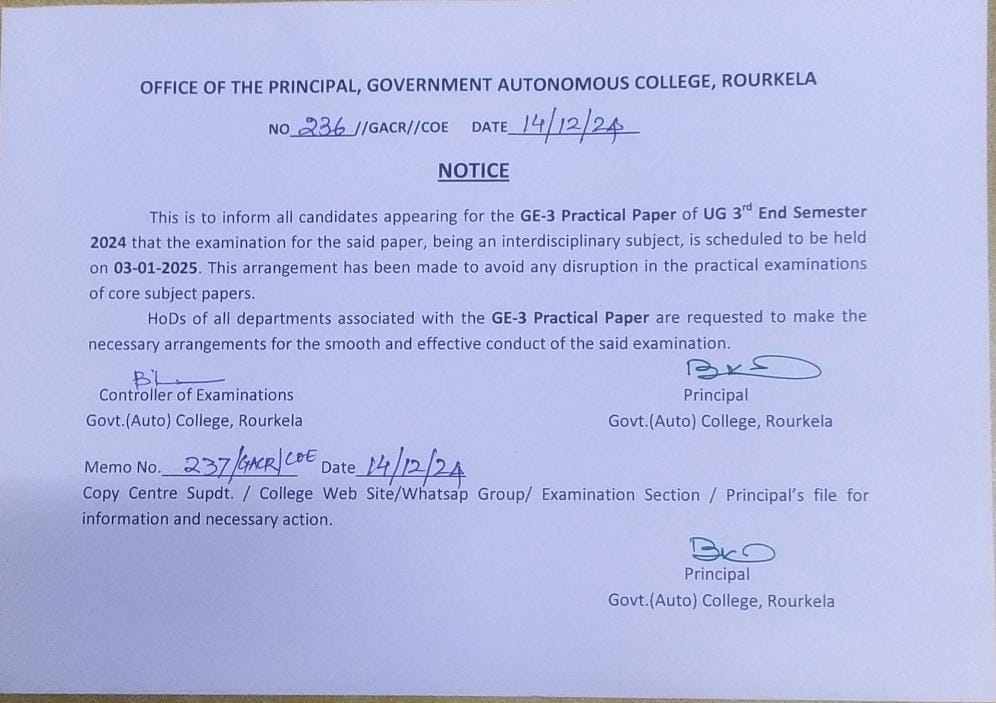 UG 3rd Semester GE-3 Practical Paper Exam Notice 2025