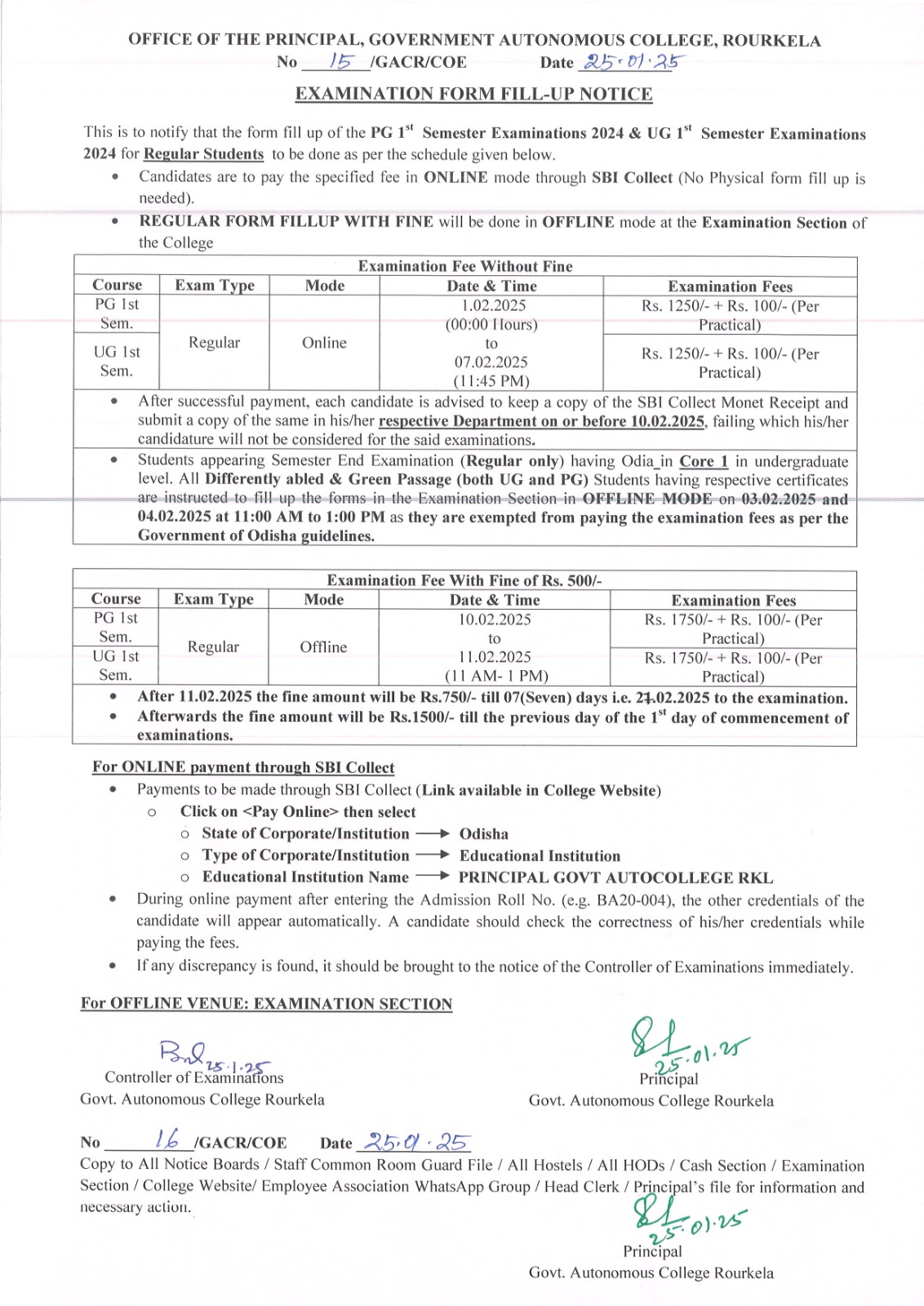 PG/UG 1st Semester 2025 Form Fillup Notice (Regular)